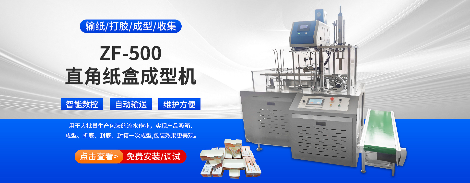 瑞安市中法機械有限公司是一家從事立體紙盒機,漢堡紙盒機,打包紙盒機,快餐紙盒機等成型包裝機械的設(shè)計、研發(fā)、產(chǎn)銷一體化的高科技企業(yè)。公司有現(xiàn)代化的管理體系和完善的售后服務(wù)體系;有一支具有充滿青春活力的精銳研發(fā)團隊!自成立以來,中法公司堅守“誠信、學(xué)習(xí)、發(fā)展”的企業(yè)發(fā)展理念,堅持“以誠信為道、以質(zhì)優(yōu)取勝”的經(jīng)營原則,在市場競爭中取得了良好的社會和經(jīng)濟效益!